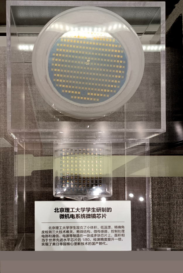 项目团队在北京展览馆展出的MEMS微镜芯片