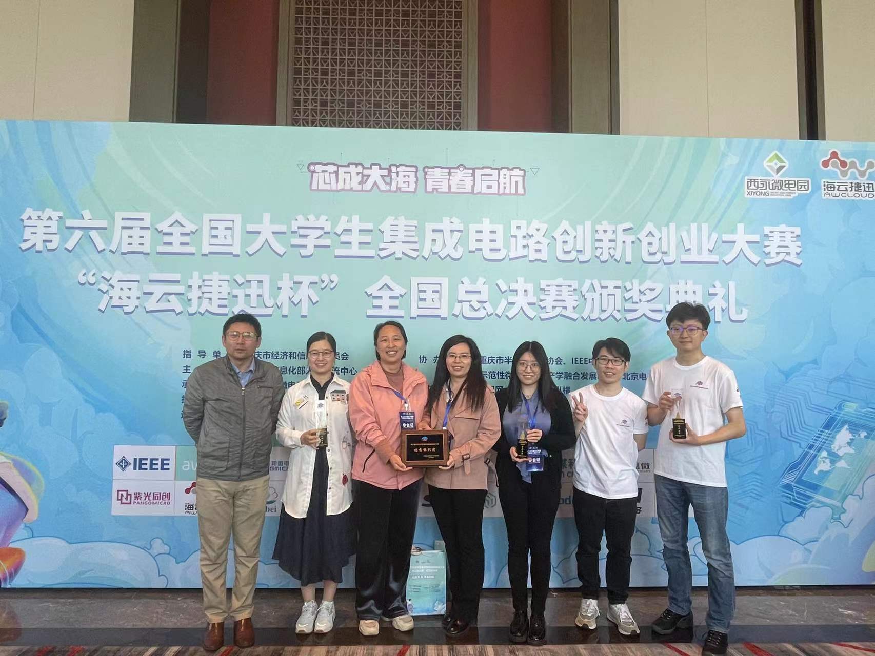 2023年4月15日,第六届全国大学生集成电路创新创业大赛“海云捷讯杯”全国总决赛颁奖典礼在重庆举行。H小说 代表队获得全国一等奖4项、二等奖1项、三等奖8项,在华北分赛区获奖32项。其中,我校代表队荣获3项企业大奖(全国第一),位列全国之首。竞赛举办以来,首次出现同一高校荣获3项企业大奖,打破了大赛记录。自2019年第三届全国大学生集成电路创新创业大赛首次设置企业专项奖以来,我校代表队实现了连续4年企业大奖不断线。