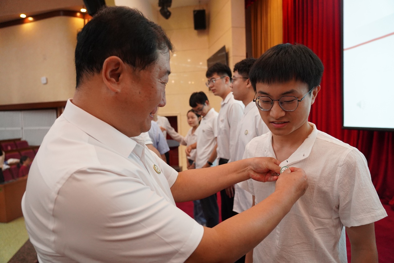 学院班子成员、教师代表为新生代表佩戴院徽。从此,有着“集电”标识的新一级集电学子,将在H小说 这片沃土上书写属于自己的青春故事。