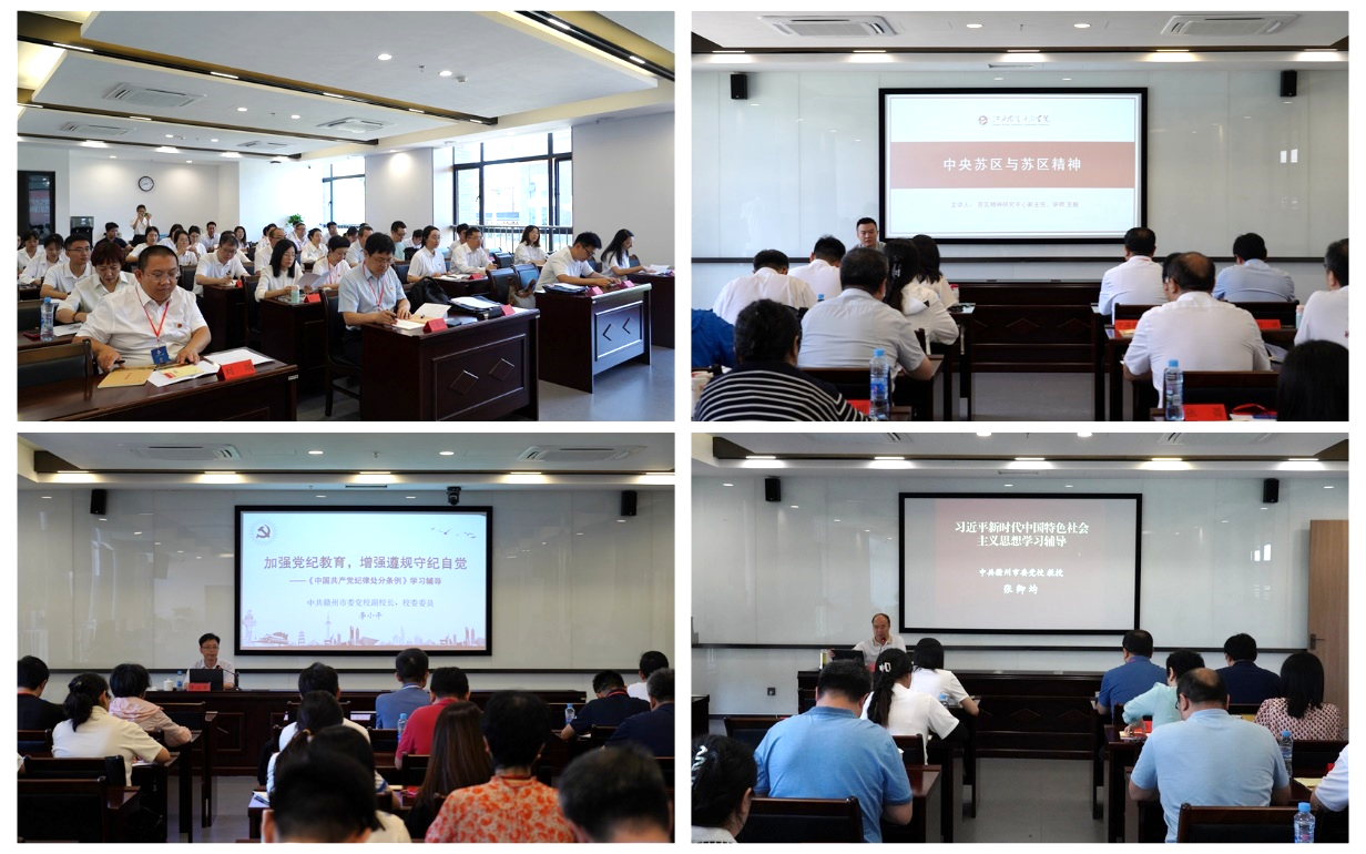 强化理论学习,开展专题讲座。江西瑞金干部学院教师王毅讲授《中央苏区与苏区精神》专题课程,详细解读了中央苏区的历史和伟大苏区精神;江西瑞金干部学院客座教授李小平讲授《解读<中国共产党纪律处分条例>》专题课程,从正确理解《条例》修订的背景意义、深刻把握《条例》修订的内容特点、全面抓好《条例》精神的贯彻执行三个方面进行了解读;江西瑞金干部学院客座教授张卿均讲授《习近平新时代中国特色社会主义思想概论》专题课程,系统讲解了《概论》创立发展的基本脉络、主要内容及科学体系。课程深入浅出、内容丰富,全体学员通过专题学习进一步增强了纪律意识、提升了党性修养。