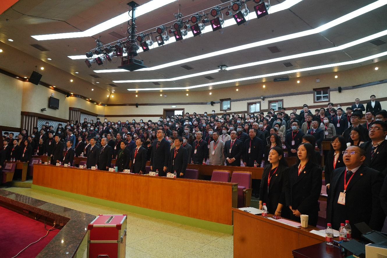 上午9时30分,大会正式开始。全体起立,高唱《中华人民共和国国歌》。