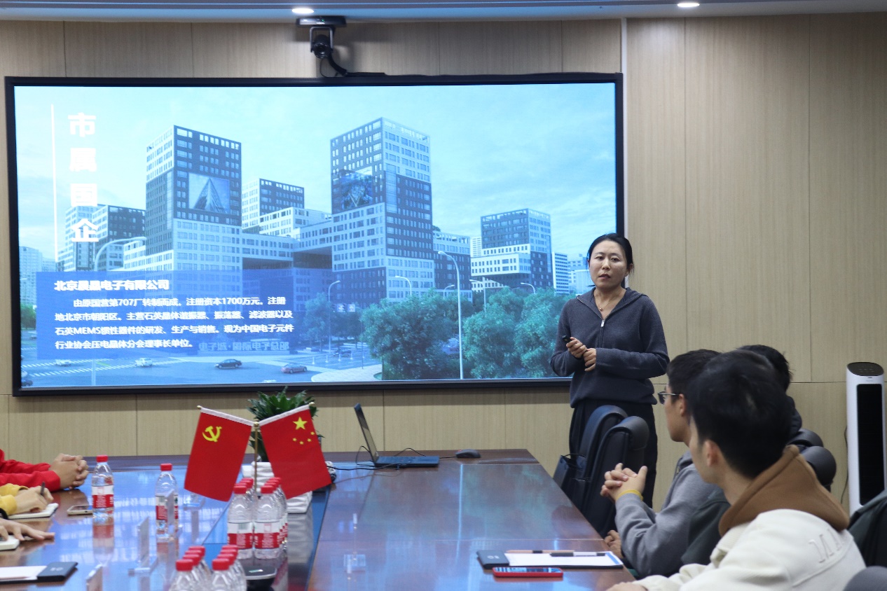 北京晨晶电子有限公司相关人员与师生举行交流座谈。公司副总经理张琳琳对学校师生的到来表示热烈的欢迎,并从晨晶电子的主要业务、应用领域、人才招聘与培养等方面进行了详细介绍。辅导员张晓磊就学院的学科建设、人才培养等方面做了简要介绍,并希望未来能与晨晶电子进一步加强校企交流与合作,提高人才培养质量,助力毕业生高质量就业。