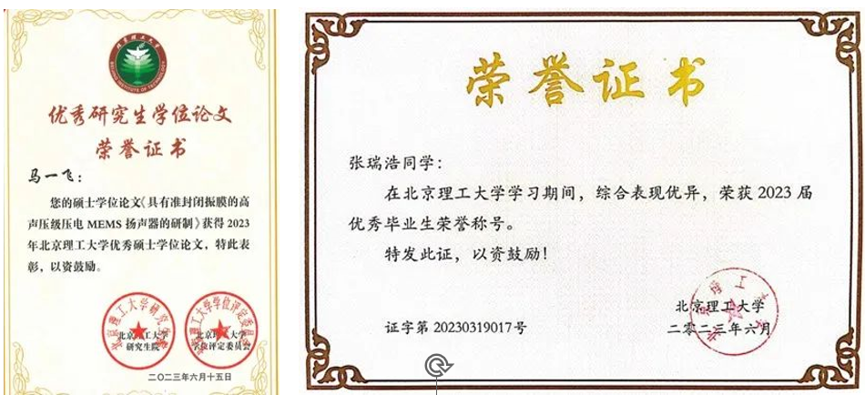 学生自我成长方面,i2MEMS团队会定期组织学生参加相关学术培训与学术会议,提升学生的科研能力,扩展学生科研眼界。如2021年10月22~24日i2MEMS团队组织学生参加《第36期“见微知著”培训课程:微光学元件及应用》,由i2MEMS团队谢会开教授、无锡微奥科技有限公司副总经理王鹏博士等带来了MEMS微镜原理及应用的讲解,让学生们能够在短时间对微光学元件的原理、典型元件、制造方法及应用等不同方面有较深了解,从而帮助学生拓展思路,开阔视野。2023年,研究所共有6名硕士研究生毕业,并指导12名本科生完成毕业设计。