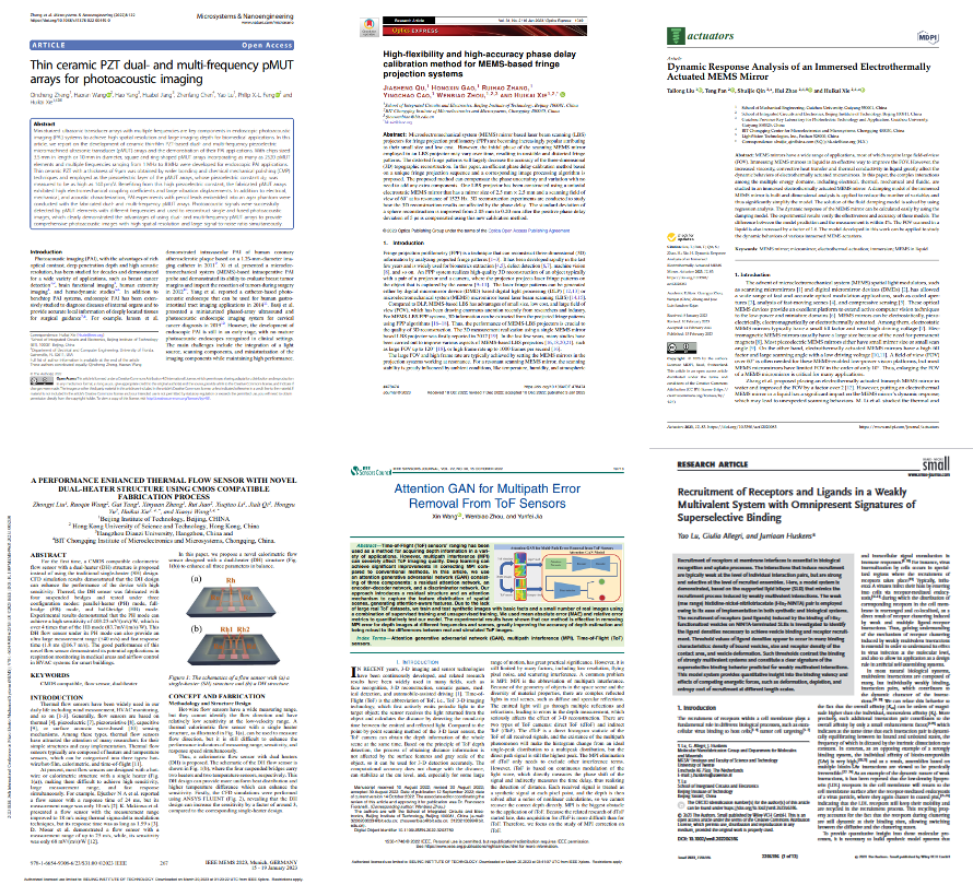 研究所师生取得的研究成果多次在SCI期刊、顶级会议上发表,包括Nature Communications、Science Advances、PNAS、JMEMS、Sensors & Actuators、Microsystems & Nanoengineering、IEEE Sensors Journal等,顶级会议包括IEEE MEMS conferences、IEEE Transducers conferences、MicroTas等。
