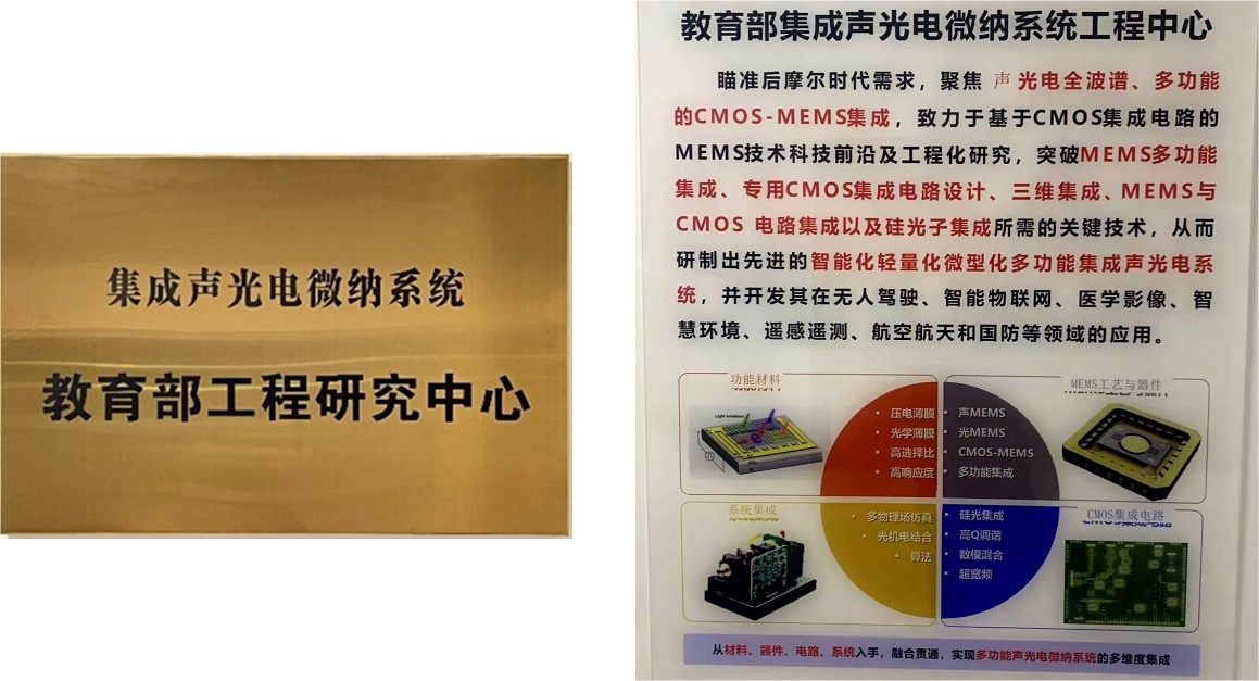 4)集成声光电微纳系统教育部工程中心:省部级研发平台和人才基地,聚焦于声光电微纳器件与集成微系统的全流程开发。