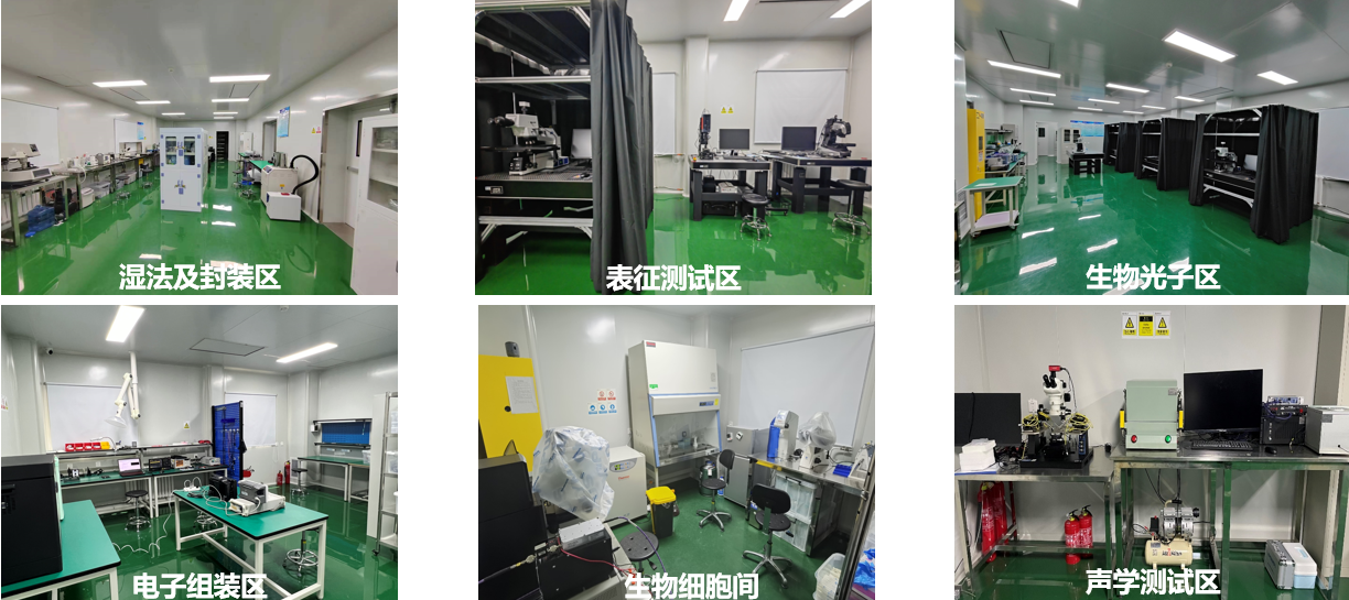 1)H小说 中关村校区实验室:占地面积300 m2,划分为六大分区,包括生物光子区、声学区、测试表征区、湿法工艺区、电子组装区、细胞间。