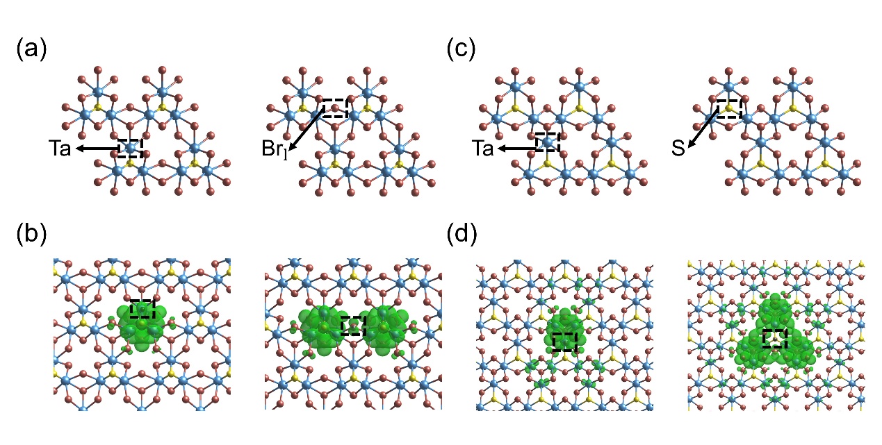 图1:呼吸型笼目半导体单层Ta₃SBr₇的原子结构自由度
